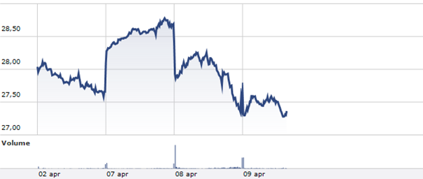 Figuur 1 Beleggers van Shell zijn niet overtuigd van de voordelen van de overname