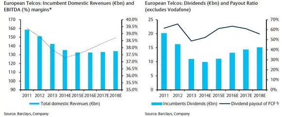De gevestigde namen in de Europese telecomsector hebben moeilijke jaren achter de rug op hun respectievelijke thuismarkten. In de periode 2011 – 2014 daalde hun organische omzet met ongeveer 14%. De EBITDA marge daalde voor de gehele groep met 2% naar 37,5%. De achteruitgang was toe te schrijven aan een combinatie van prijsdruk, strengere regelgeving en het verlies van marktaandeel aan nieuwkomers.