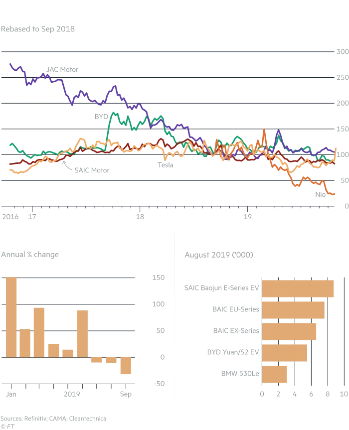 Het resultaat is dat de verkoop van NEVs heel stevig aan het dalen is. Onder deze duurdere omstandigheden komt het dan niet goed uit dat de Chinese Tesla $ 47.000 moet gaan kosten. Die prijs is het dubbele van de concurrentie.