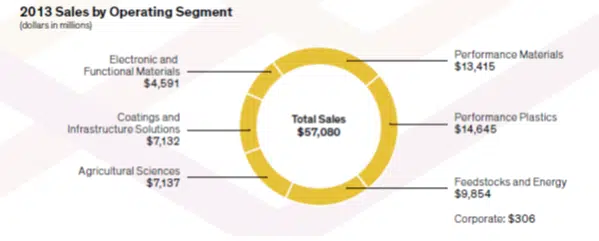 $ 0,72 en dat was ook 44% meer dan in 2013. Hoewel alle divisies aan de omzet- en winstgroei bijdroegen, staken de prestaties van Performance Plastics en Performance Materials er opvallend bovenuit. Bij beide divisies groeide de omzet met 8% maar de winst voor belastingen en afschrijvingen verveelvoudigde met respectievelijk meer dan 160% en meer dan 300%.
