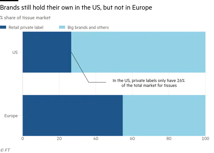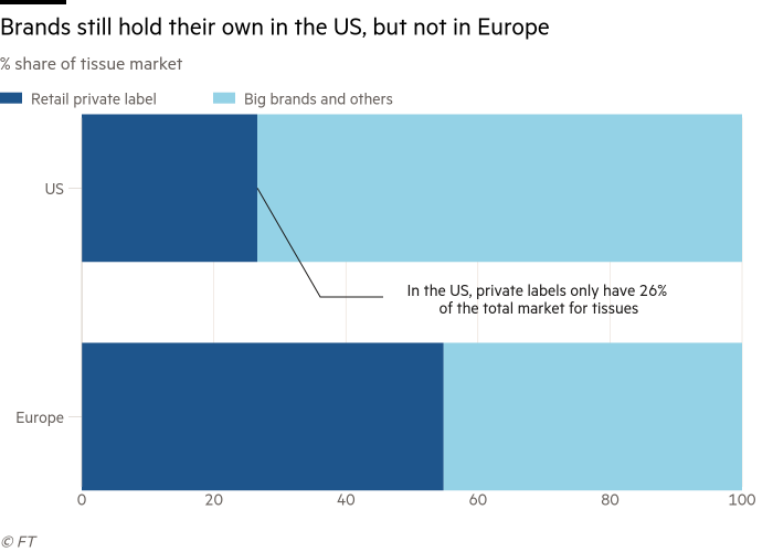 De laatste bedreiging, althans in de Verenigde Staten, is de pijlsnelle opkomst van het huismerk. Bij grote en gevestigde namen als Wal-Mart of Target groeit de omzet van het huismerk tot viermaal zo snel als die van het befaamde A-merk. Consumenten gaan massaal door de knieën voor de combinatie van lage prijzen. De onderzoekers van Nielsen kwamen tot de conclusie dat in het laatste kwartaal van 2018 de omzet van private label artikelen met 4,3% groeide, terwijl de verkopen van de 20 bekendste A-merken met 1,2% toenamen.