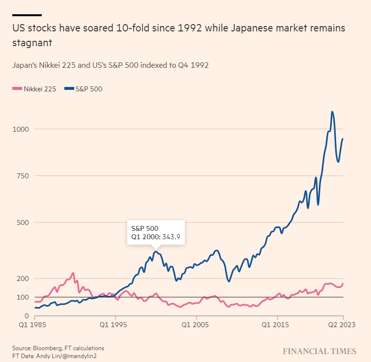In de tijd die het heeft gekost voor Japanse aandelen om te herstellen van de crash in 1989, zijn de Amerikaanse aandelen meer dan 10 keer overgestegen.
