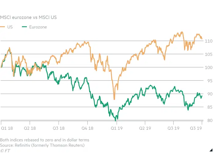 Europese aandelen zijn volgens de Amerikaanse zakenbankiers naar elke denkbare maatstaf spotgoedkoop vergeleken met hun Amerikaanse tegenhangers.