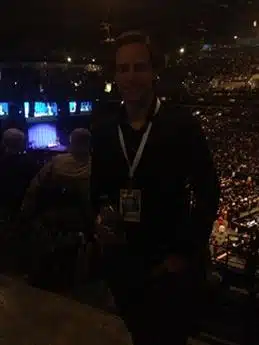 Zoals afgesproken haal ik hem om zes uur op om naar het Centry Link gebouw, Downtown te rijden. Daar aangekomen is het al ontzettend druk. Omdat het regent, blijken de deuren eerder open te zijn. Normaal gesproken staat er een hele lange rij opgesteld.