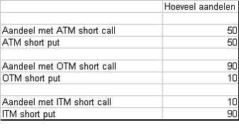 Hieronder zal ik twee voorbeelden behandelen om één en ander te verduidelijken. Het eerste voorbeeld is de constructie op TTM van mijn vorige column. Daarna behandel ik een voorbeeld waarbij ik zeer uiteenlopende uitoefenprijzen kies.