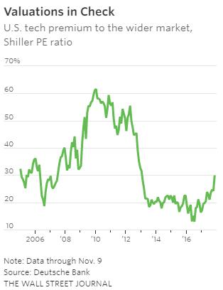 Sommige analisten wijzen vergelijkingen met de dot-com-boom af. Technische waarderingen in de VS zijn slechts een fractie van waar ze waren in die periode. Begin 2000 handelde de technische sector van S & P 500 tegen een koers / winstverhouding van 52, volgens FactSet. Vandaag is dat PE 19, in vergelijking met 18 voor de S & P 500 als geheel.
