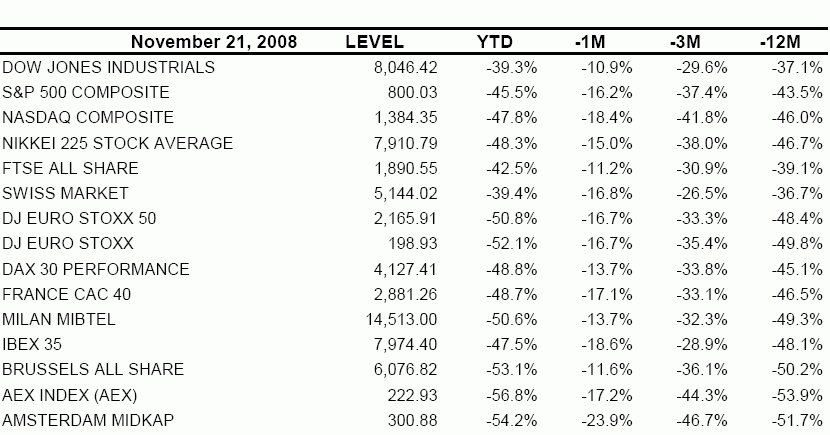 Ook aandelenmarkten sloegen de weg naar het zuiden in. In de VS werden de dieptepunten van de zomer van 2002 getest en zelfs even doorbroken. In Europa zijn we nog wat verwijderd van de dieptepunten die hier in maart 2003 werden gezet.