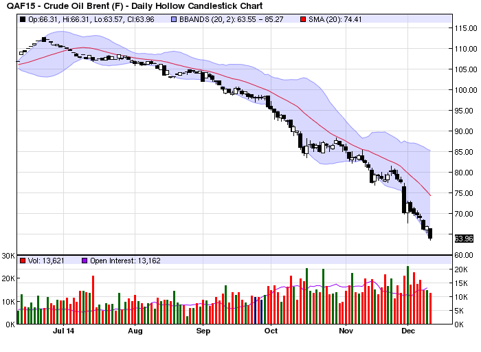 In de markt leeft dan ook de overtuiging, dat er zeker in de eerste helft van 2015 geen productiebeperking zal komen. Daarmee is de kans groot, dat prijzen kunnen gaan dalen naar een niveau van $ 50 per vat of zelfs daaronder. Mocht het zover komen, dan zal er door meerdere plaatsen pijn geleden gaan worden. Dat is in de eerste plaats OPEC zelf. Voor veel lidstaten is een langdurige prijzenoorlog zonder meer rampzalig. Maar ook producenten van schalieolie krijgen het zwaar te verduren. De producenten slagen er weliswaar in om de kostprijs stelselmatig omlaag te brengen, maar voor sommige partijen gaat dat niet snel genoeg. Daar komt nog bij, dat veel schaliebedrijven hun financieel bestaan gebouwd hebben op de uitgifte van junk bonds. In the good old days was dat geen probleem, maar onder gegeven omstandigheden proberen steeds meer beleggers hun investeringen aan derden te slijten. Er zijn echter meer aanbieders dan vragers.
