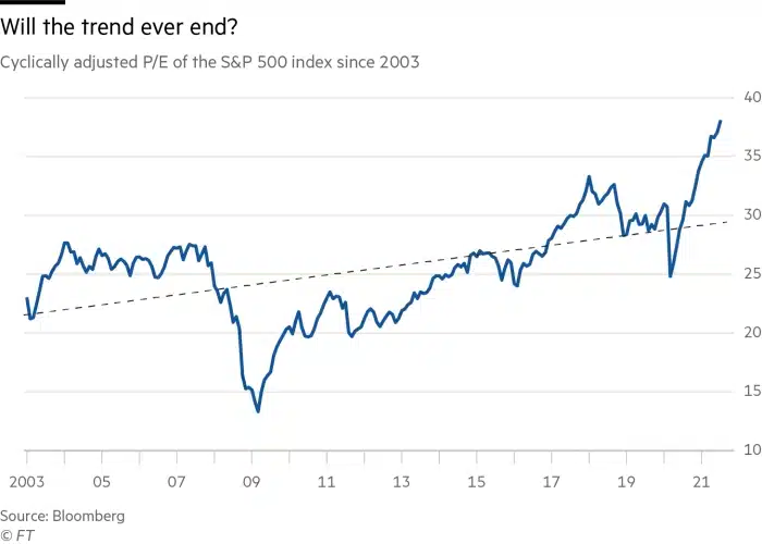 Volgens Vincent Deluard, strateeg bij StoneX, is de snel groeiende populariteit van passief beleggen een belangrijke oorzaak voor de voortdurende koersstijgingen van aandelen. Door de toestroom is er een verschuiving opgetreden van ‘price-sensitive’ actieve beleggers naar value-agnostic passieve beleggers en dat kan als verklaring dienen voor de aanhoudende stijgende waarderingen van aandelen.