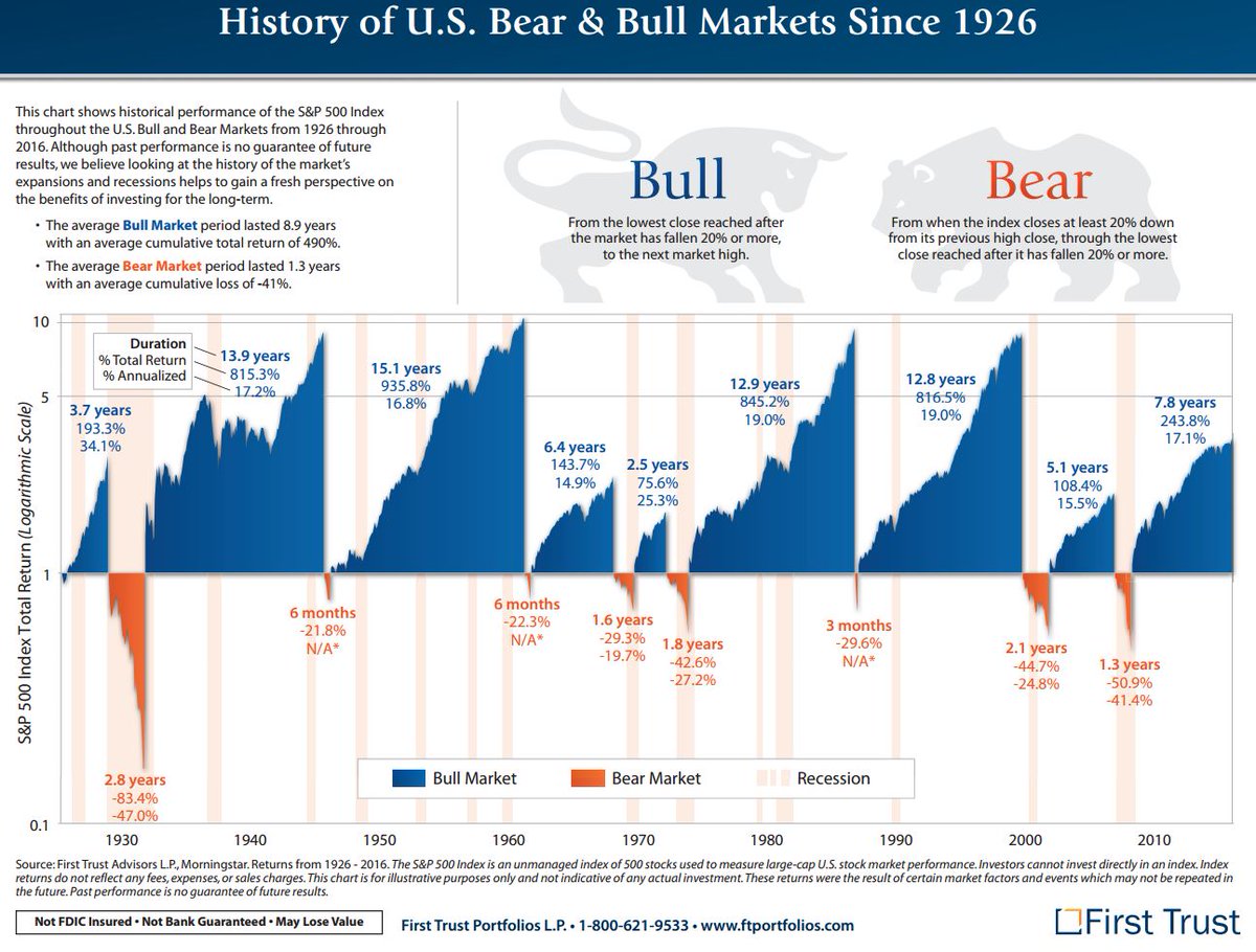 De gemiddelde opgaande trend oftewel “bull markt” duurt ongeveer 8,9 jaren met een gemiddelde cumulatieve winst van 490% (gemiddelde jaarwinst van 55%). De neergaande beweging oftewel “bear markt” duurt 1,3 jaar met een gemiddeld verlies van 41% (op jaarbasis 31,5%).