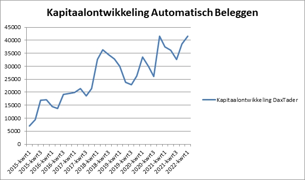 Het systeem is begonnen in juni 2015 met een startkapitaal van 7.000 euro. Die is per 1 april 2022 aangegroeid tot € 41.594. Dat betekent een rendement van 494%.