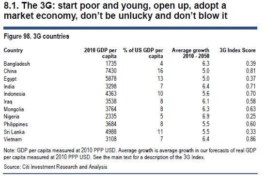 Na BRIC en N-11 heeft de wereld de beleggerwereld er een nieuwe afkorting bij. De bedenker van deze afkorting is Willem Buiter, een van de kandidaten om Nout Wellink op te volgen maar u nog strateeg bij Citigroup. Buiter en zijn coauteur Ebrahim Rahbari introduceerden onlangs in een korte studie het begrip 3G. Dat is geen derde generatie telecomwaarde, maar staat voor Global Growth Generators. De auteurs gaan een stap verder dan BRIC zonder overigens de vitale rol van de BRIC landen to ontkennen of te onderschatten.