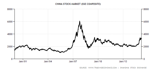 Beurs. Ondanks de al geruime tijd zichtbare verzwakking van de Chinese economie heeft de beurs van Shanghai het goed gedaan: zie grafiek.