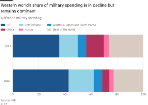 En waarschijnlijk toch ook meer zelfvertrouwen. Natuurlijk is de opmars van China imponerend, maar de VS en de Europese bondgenoten werpen nog steeds heel veel gewicht in de schaal. Ze geven meer uit aan defensie, hebben gezamenlijk een veel grotere economie en importeren op wereldschaal veel meer dan China. Dat land is veel afhankelijker van de export naar de Westerse landen dan omgekeerd. In deze situatie zal de komende jaren waarschijnlijk weinig verandering komen. Onder de huidige sterke man, Xi JingPing, is het land een nieuwe weg ingeslagen, weg van de weg van de hervormingen. Dat mag weleens een heel slecht besluit blijken. We zijn het geneigd te vergeten door de opkomst van de autoritaire leider, maar de ideologie van vrijheid, democratie en de wet is voor de overgrote meerderheid van de wereldbevolking nog steeds veel aantrekkelijker dan het Chinese communisme. Het Westen heeft hooguit te lijden onder het eigen falen, niet van ideologische concurrentie van China.