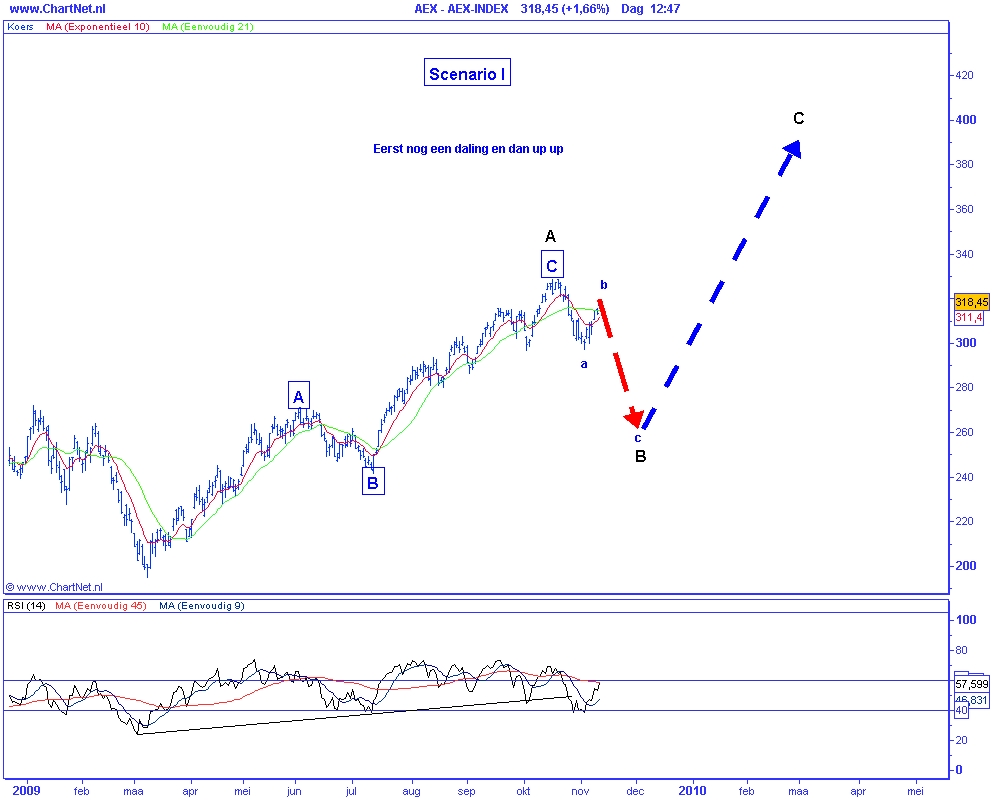 Technische analyse van de AEX op 27 november 2009 (op basis van Elliot Wave)