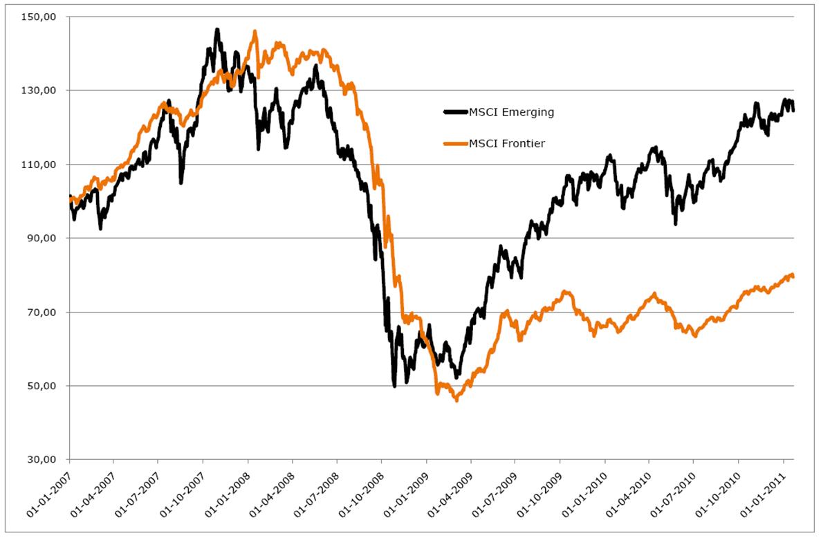 Ook in 2011 is een aantal Frontier Markten (FM) sterk uit de startblokken vertrokken (Nigeria, Kenia, Libanon en Estland). Deze Frontier Markten behoren sinds de start van 2011 tot de best presterende landen wereldwijd. Er zijn in de laatste jaren wel vaker perioden geweest waarin de FM beter presteerden dan de Emerging Markten (EM).