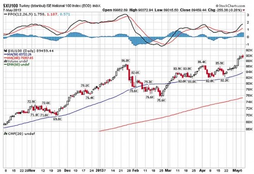 De internationale beleggingsgemeenschap weet de Turkse inspanningen op waarde te schatten. Zij weet de weg naar Ankara al goed te vinden. De Turkse aandelenindex staat op een all-time high! Bij INVINCO staat Turkije allang aan de top van de lijst van kansrijke Emerging Markets.