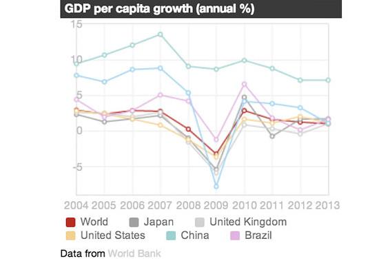 Gewoonlijk hadden ontwikkelde landen een soortgelijke bevolkingsgroei maar dat verandert nu aanzienlijk. In Japan, Duitsland en Italië groeit de bevolking nauwelijks of is aan het krimpen. Als deze trend zich doorzet dan wordt BBP steeds minder een toonaangevende maatstaf terwijl het BBP per inwoner aan belang wint.