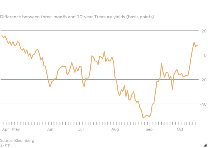 Afgelopen maand normaliseerde de yieldcurve. Er leek onder meer een schikking in de handelsoorlog nabij en de Fed maakte bekend maandelijks voor $ 60 miljard aan treasuries te gaan opkopen. Iedereen blij.