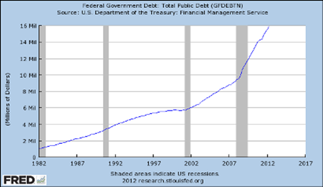 Door het zo te stellen lijken de problemen niet zo groot. Door een “normale” economische groei en een uitvoering van 60% van de fiscal cliff maatregelen (3% van het BBP) kan Amerika weer de zaken structureel op de rails krijgen. Door een gefaseerde invoering zal een (langdurige) recessie kunnen worden vermeden.