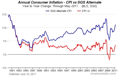 Dat betekent tevens dat het CPI-cijfer nóg onbetrouwbaarder wordt als indicator van de koopkracht van de Amerikaanse dollar dan hij al was. Door de jaren heen is de berekeningswijze diverse malen aangepast. John Williams heeft al eens laten zien hoe groot de koopkrachtuitholling is wanneer nog steeds de vroegere berekeningswijze uit 1980 wordt gehanteerd.