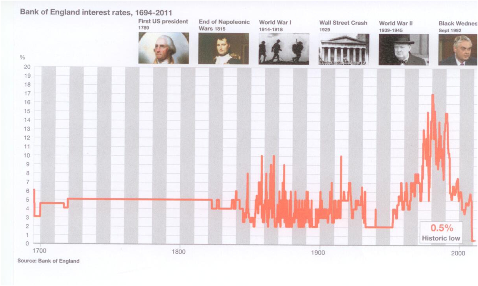De Gouverneur van de Bank geeft zelf in zijn speech een duidelijk antwoord. De oplopende inflatie is het gevolg van een combinatie van hogere invoerprijzen en hogere energieprijzen en de recente BTW-verhoging. Samen hebben deze factoren gemiddeld 3 procentpunt bijgedragen aan de jaarlijkse inflatie in de afgelopen vier jaar, bijna net zoveel als het feitelijke inflatiecijfer. De binnenlandse bijdrage aan de inflatie is dus te verwaarlozen. Een verhoging van de rente zal dus volgens King de inflatie niet bestrijden, maar wel de recessie verergeren. De record lage rente zal in ieder geval tot en met het verschijnen van het February Inflation Report blijven gehandhaafd.