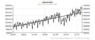 De verklaring zit niet alleen in dalende importen door de recessie, maar vooral ook in een fraaie Spaanse exportprestatie.