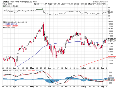 Afgelopen weekeinde koos het Olympisch Committee opnieuw Japan om de Spelen van 2020 te organiseren. De opwinding in het land van de Rijzende Zon is groot, zowel bij de bevolking als bij de beleidsmakers. Ongeveer 90% van de bevolking zou de 2020 spelen steunen. Evenals in 1964 zien een groeiend aantal politici de Spelen als het beste toneel, om de wereld een nieuw Japan te tonen. De Spelen van 2020 moeten het bewijs gaan vormen, dat het land een lange periode van economische en sociale stagnatie succesvol achter zich gelaten heeft. Analisten van Nomura en Daiwa Bank gaan zelfs zover, dat ze in rapporten aan cliënten, de Olympische Spelen de vierde pijl van de economische strategie van premier Abe noemen. Die strategie is gestoeld op drie pijlers of thema’s: hogere publieke uitgaven, een ruimer monetair beleid en structurele hervormingen.