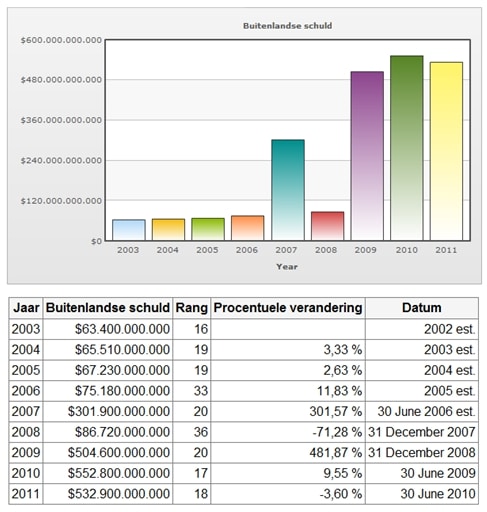 Buitenlandse schuld Griekenland. Bron: Indexmundi, CIA World Factbook