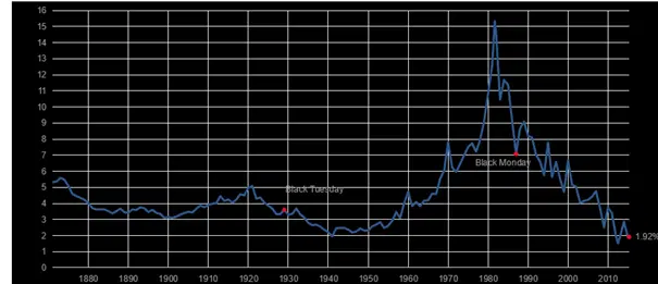 Nog lang betekent echter niet voor eeuwig en er zijn genoeg argumenten om dat aannemelijk te maken. De afgelopen 35 jaar is de rente alsmaar gedaald en ook de rente op obligaties is naar ongekend lage niveaus gegaan in diezelfde periode. De aanhoudend neerwaartse trend is het gevolg van een eveneens aanhoudende daling van de inflatie. In tweede instantie is het ook het gevolg van de recente monetaire verruiming.