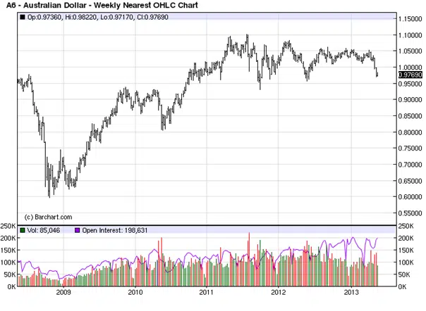 De Australische economie heeft de afgelopen twintig jaar buitengewoon goed gepresteerd. Zelfs de moeilijke beginjaren van de financiële crisis van 2008-2009 kwam het land tamelijk ongeschonden door. Dat is ook terug te zien aan de koersontwikkeling van de Australische dollar. Die bedroeg in oktober slechts $ 0,65 om in de jaren daarna te stijgen naar A$1/$1,10 halverwege 2012.