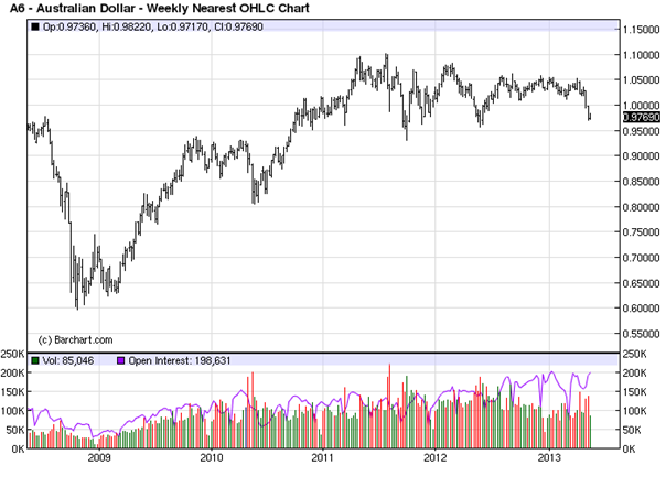 De renteverlaging in mei was uitgelokt door het verzwakkende economische klimaat in het land. In het vierde kwartaal van 2012 was de groei naar 0,6% gezakt en de vooruitzichten voor het eerste kwartaal van 2013 waren op zijn best als mager te omschrijven. Ook in Australië gaat het met de bouw de verkeerde kant op, terwijl het consumentenvertrouwen afneemt door de groei van de werkloosheid. Die ligt nu op 5,5% van de beroepsbevolking. De overheid heeft de groeiverwachting voor het lopende jaar al verlaagd van 3% naar 2,75%. Dat klinkt bijzonder mooi in Europese oren, maar niet in de Australische. In een reactie zakte de Australische dollar onder pariteit met de Amerikaanse dollar. Die daling was niet alleen ingegeven door de zwakkere vooruitzichten. Het land ziet zich sinds kort geconfronteerd met een overheidstekort van bijna A$ 20 miljard en ook voor komend jaar heeft de overheid een tekort voorzien van A$ 18 miljard. Op de financiële markten groeit de vrees dat de overheid de weg van de eurozone gaat inslaan en fors gaat bezuinigen om de tekorten zo snel mogelijk weg te werken. Dat zou de nekslag voor de toch al afnemende economische groei zijn.