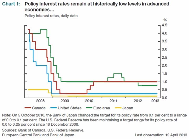 De achtergrond van de discussie is de groeiende bewijslast, dat vijf jaar van verruimend beleid ook negatieve gevolgen heeft. In tegenstelling tot in andere verruimende landen, worden die in Canada steeds duidelijker. Dat is te wijten aan de Canadese economie zelf. Die draait nagenoeg op volle capaciteit. De combinatie van een hoge graad van benutting van de economische capaciteit en goedkoop geldt moet wel leiden tot een explosie van inflatie. Die hoge benuttingsgraad staat in schrille tegenstelling tot de VS, waar de benuttingsgraad van de industrie nog onder 80% ligt. Dat was voor het IMF aanleiding om de Fed aan te sporen nog niet te stoppen met haar verruimingsprogramma.