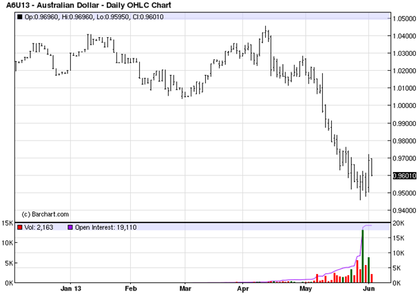 De laatste factor is ook de meest recente. In de VS is de discussie op gang gekomen of en wanneer de monetaire verruimingsplannen afgebouwd gaan worden. Die discussie drijft de waarde van de US$ omhoog ten koste van andere valuta’s, waaronder de A$.