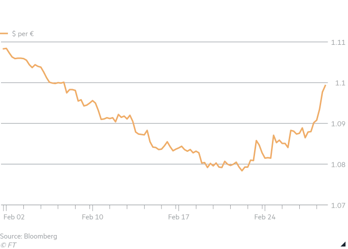 Van de dollar zijn we het gewend. In tijden van nood, zoekt de belegger zijn heil bij deze munt. Dat gaat dan bijvoorbeeld ten koste van de euro. Maar dit keer lijken de bordjes verhangen en stijgt de euro in waarde, zowel ten opzichte van de dollar als ten opzichte van een mandje van gewogen valuta’s.