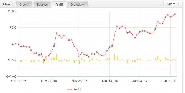 Het systeem heeft in 3 maanden een winst van ruim 9.000 euro bij mekaar getrade. Dat betekent een rendement van 45% !