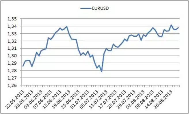 Als de economische groei in de Verenigde Staten hoger is dan in Europa en bovendien de kapitaalmarktrente sneller oploopt dan in de eurozone, dan zou toch de dollar moeten stijgen? En als ook nog de baas van de centrale bank in het dollarland zegt dat er een begin zal worden gemaakt met het beëindigen van een deel van de overvloedige monetaire stimulering (tapering) – en markten gokken erop dat dat al in september a.s. is – en bovendien de baas van de euro-centrale bank zegt dat hier de beleidsrente nog veel langer laag zal blijven, dan zijn dat toch ook argumenten voor een koersstijging van de dollar?