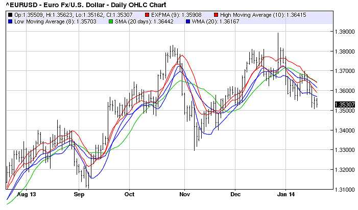 Het aandeel DSM daalde gisteren met meer dan 10 % op de Amsterdamse beurs. Vandaag komt daar nog ongeveer 2% bij. De belangrijkste oorzaken van de scherpe daling zijn de matige vooruitzicht voor 2014 en de lage US dollar. DSM staat hierin niet alleen. Veel Europese bedrijven hebben last van een te lage US Dollar, of liever gezegd van een te dure euro. Maar wij hebben goed nieuws. De vooruitzichten voor de US dollars/Euro zijn positief.
