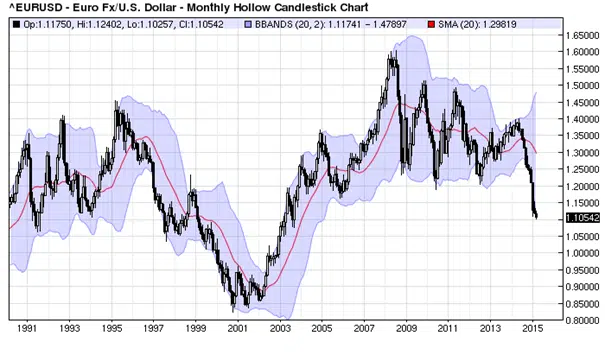 Een negatieve factor is de zwakte van concurrerende valuta’s zoals de euro en de yen. Zo verliest de euro steeds meer terrein op de dollar. In oktober van 2014 was de euro nog $ 1,30 waard, nu is dat nog slechts $ 1,10. De zwakte van de euro is aan meerdere factoren toe te schrijven. Zo maakt banpresident Draghi om 22 januari 2015 plannen bekend om maandelijks voor een bedrag van € 60 miljard aan Europees schatkistpapier te gaan opkopen. Als die plannen eenmaal werkelijkheid worden, dan zal dat voor een langere periode een drukkend effect hebben op de euro.