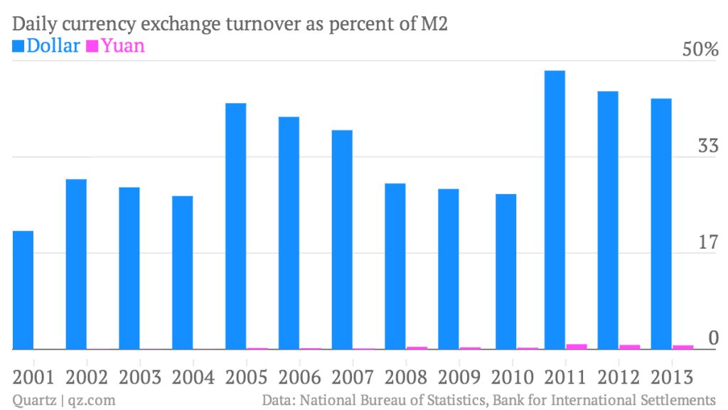 De opmars van de yuan in de valutahandel begon net na de financiële crisis waarbij een tekort aan dollars ontstond en een forse daling van de wereldwijde export. Deze twee factoren zaten waarschijnlijk achter de beslissing van de Chinese overheid om exporteurs en importeurs in yuans te laten handelen op overzeese rekeningen. Het BIS-rapport laat zien dat daarmee een explosie in de handel in yuan werd gegenereerd. De toenemende uitgifte van obligaties in yuan’s en de offshore handelsspeculatie hebben daar zeker aan bijgedragen.