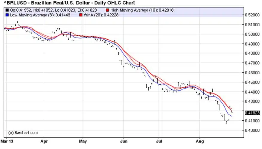 Het lijdt geen twijfel dat Brazilië, het grootste land in Zuid-Amerika, gebukt gaat onder de plannen van de Amerikaanse centrale bank, de Fed. Sinds de aankondiging van de voornemens is de reaal bijna 16% in waarde gedaald ten opzichte van de dollar. De reaal is zodoende naar het laagste niveau ten opzichte van de dollar gedaald sinds vijf jaar.