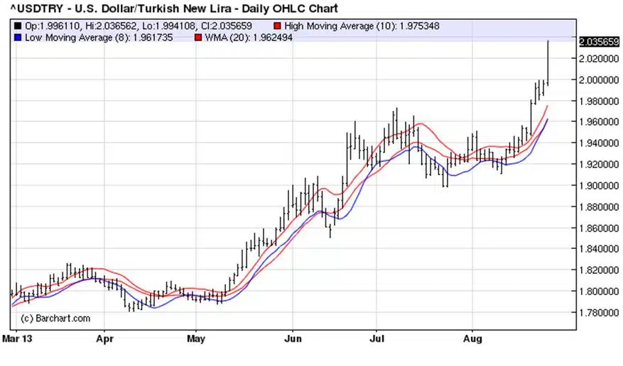 De financiële markten zijn van mening, dat al die verschillende ratio’s een krachtdadig beleid in de weg staan, waarbij de nadruk moet liggen op het intomen van de inflatie. Die kwam in juli uit op 8,9%. In reactie daarop zakte de lira diep weg, maar Basci deed nagenoeg niets om het geschonden vertrouwen terug te winnen. Interventies op de valutamarkten ter waarde van $ 8,3 miljard hebben kortstondig effect gehad, maar te weinig en te kort om de verdere val van de lira te stoppen.