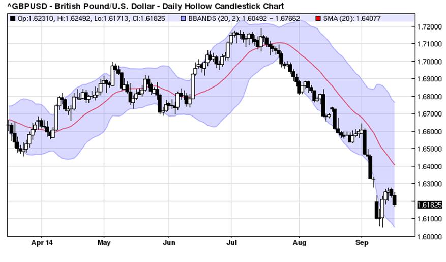 Al deze twijfels en nog veel meer hangen boven het referendum van de 18de. Het kan niet anders, gelet op alle onzekerheden, dat het Pond bij een keuze voor onafhankelijkheid onder zware druk zal komen. Valutahandelaren sluiten niet uit, dat een daling naar $ 1,50 een reële mogelijkheid is. Nu is het pond nog iets meer dan $ 1, 61 waard.