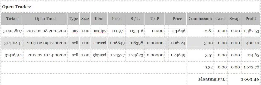 Het systeem is dus long op de yen-dollar (USDJPY), short op de euro-dollar en short op de Britse pond ten opzichte van de dollar.