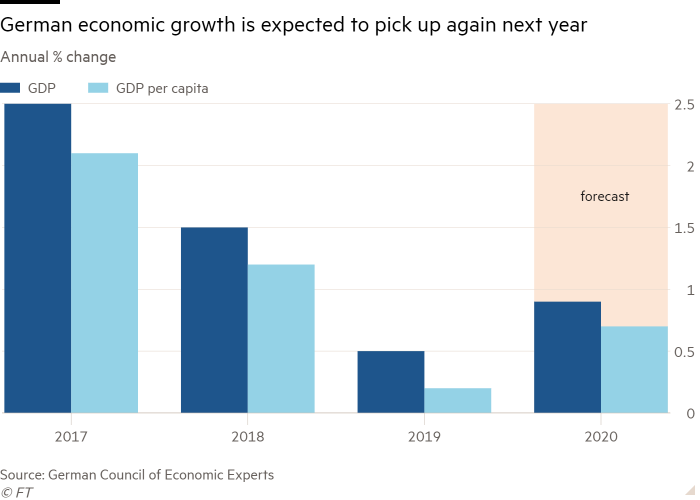 Onderzoeksbureau IHS Market bevestigt de bange voorgevoelens van de economen. Het vertrouwen in de private sector in Duitsland is naar het laagste niveau gedaald sinds het begin van de financiële crisis. De verwachting is dat de productie van goederen en diensten in 2020 licht gaat dalen en dat bedrijven massaal mensen gaan ontslaan. Dat zou voor de eerste keer zijn in 10 jaar.