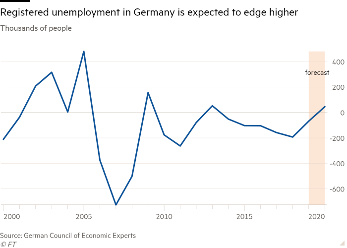 Onderzoeksbureau IHS Market bevestigt de bange voorgevoelens van de economen. Het vertrouwen in de private sector in Duitsland is naar het laagste niveau gedaald sinds het begin van de financiële crisis. De verwachting is dat de productie van goederen en diensten in 2020 licht gaat dalen en dat bedrijven massaal mensen gaan ontslaan. Dat zou voor de eerste keer zijn in 10 jaar.