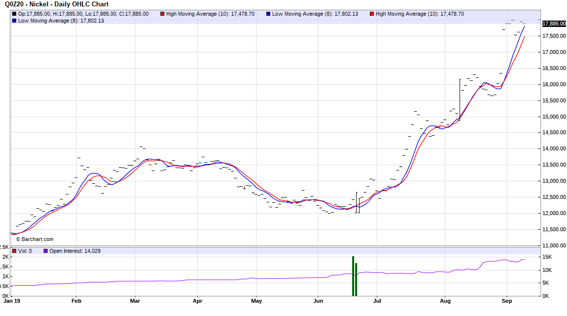 De prijs van nikkel is sinds het midden van de zomer opgelopen van $ 11,500 per ton naar een niveau rond $ 18.000. Als we Goldman Sachs mogen geloven, kan de prijs de komende maanden doorstijgen naar $ 20.000. De heftige prijs bewegingen zijn toe te schrijven aan het besluit van de regering van Indonesië om vanaf 2020 te stoppen met de export van nikkel.