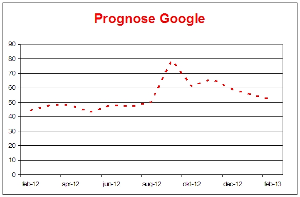Google Insights for Search onderzoekt waarden uit het verleden voor de termen die u heeft opgegeven. Op basis van deze waarden extrapoleert het programma de toekomstige waarden en maakt zo een prognose van zoektrends voor die termen.