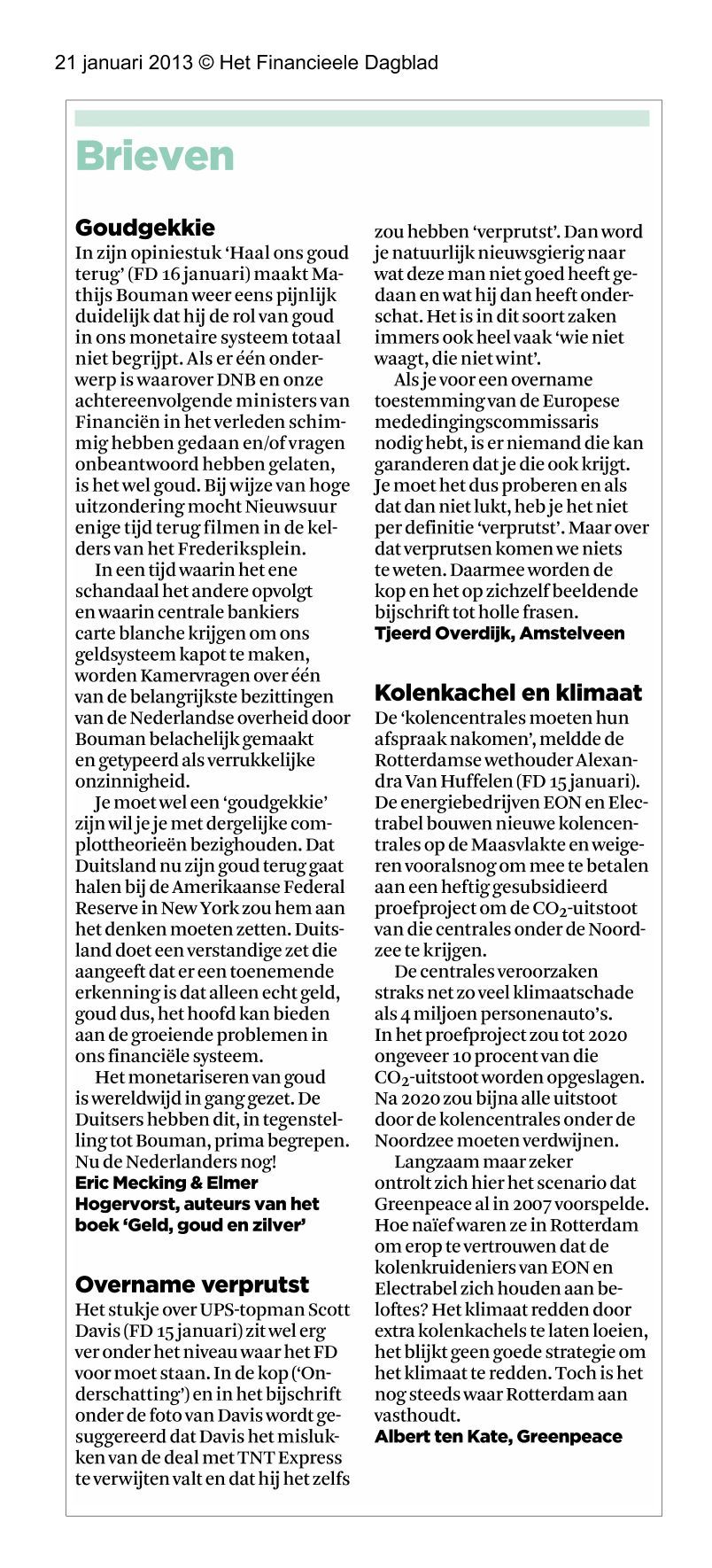 Vanmorgen stond onze ingezonden brief in het FD naar aanleiding van het opiniestuk van Mathijs Bouman. Beide stukken heb ik hieronder opgenomen.