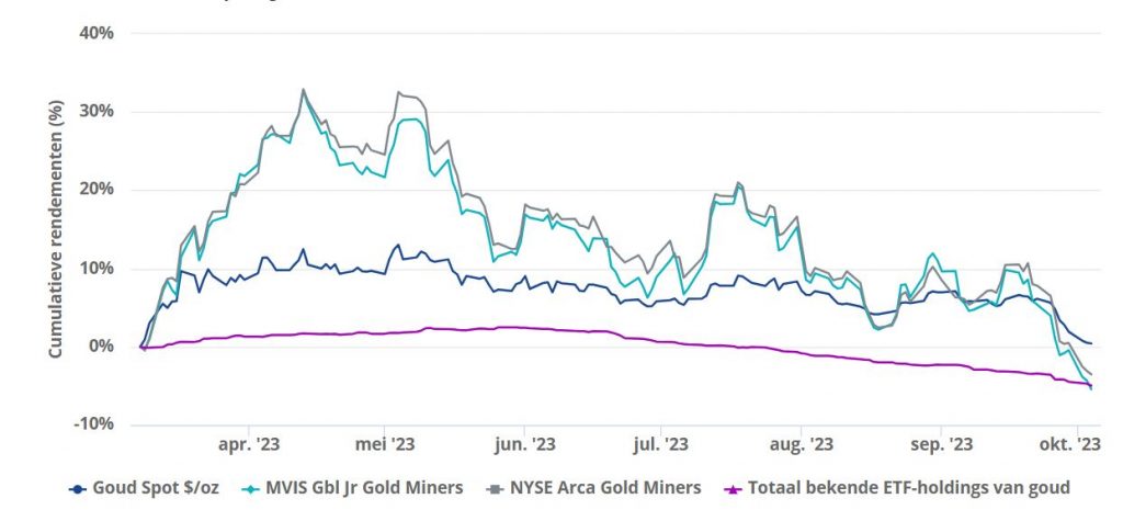 Ondanks hun sterke rendement tot nu toe dit jaar, worden goudaandelen nog steeds verhandeld tegen historisch lage waarderingen. Scotiabank schat dat voor hun universum van senior goudproducenten de huidige aandelenkoersen gemiddeld 30% lager zijn dan de spot goudprijzen6. Daarom is de voortdurende outperformance van goudaandelen ten opzichte van het metaal, zelfs in een vlakke goudprijsomgeving, volgens ons gerechtvaardigd. Ondertussen lijken de small-cap of junior goudmijnbedrijven, die de afgelopen jaren achterbleven bij het goud en de grotere bedrijven, een comeback te maken.